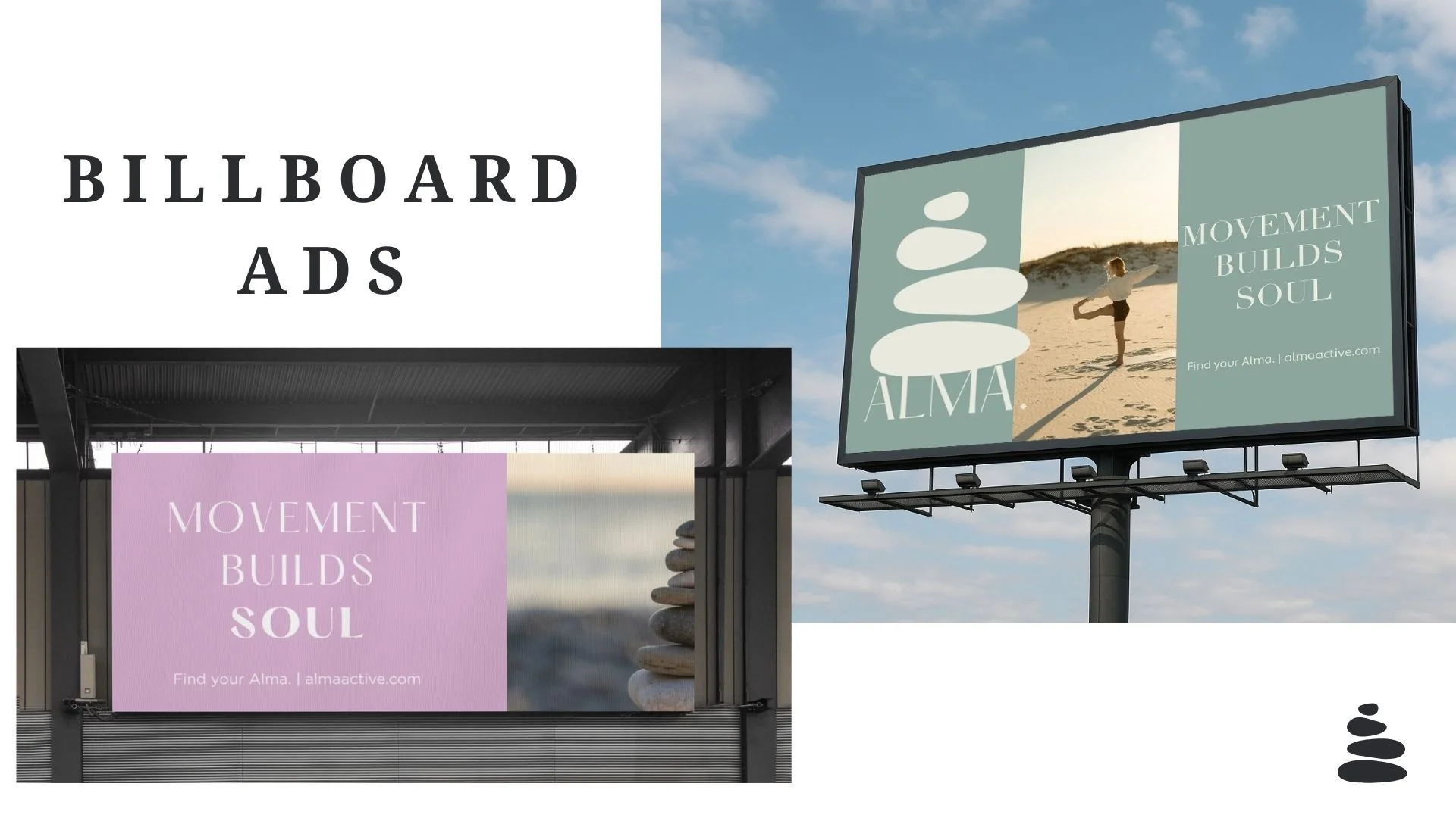 Billboards drive mass visibility and set the tone of Alma Active’s identity.